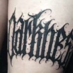 Tetování nápis, písmena, symbol na stehno