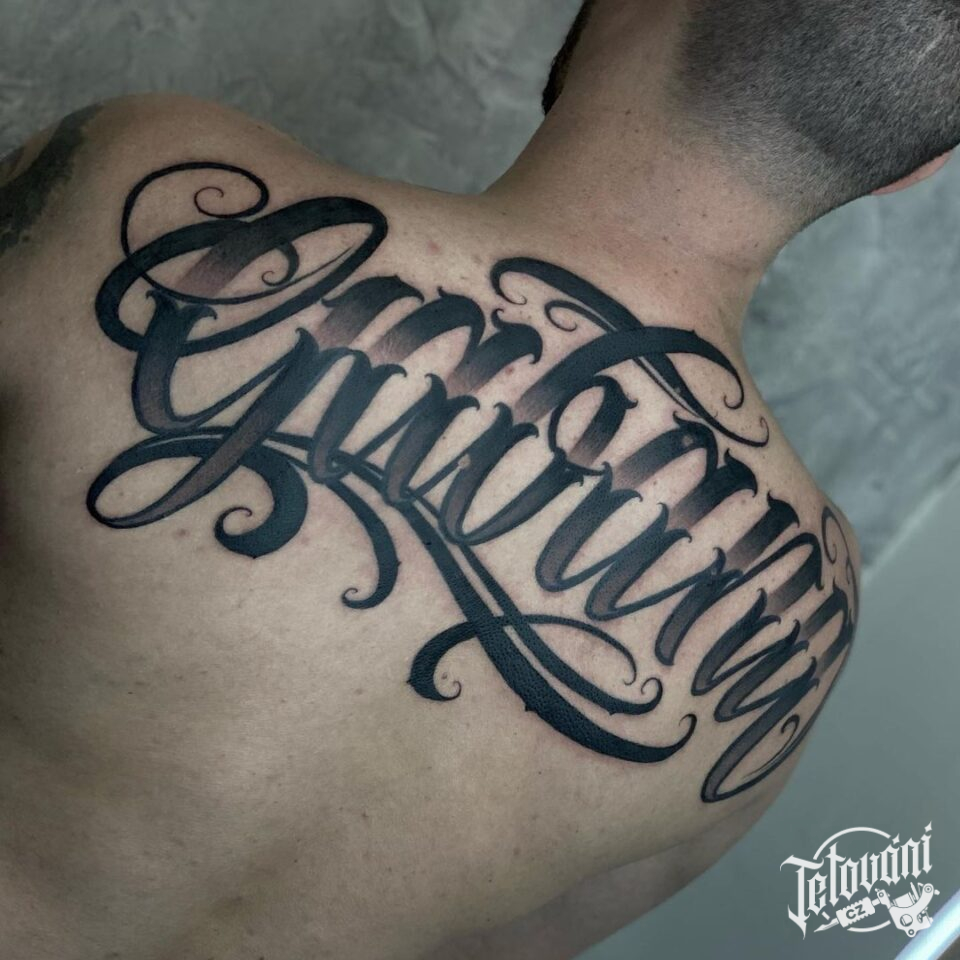Tetování nápis, písmena, symboly na záda