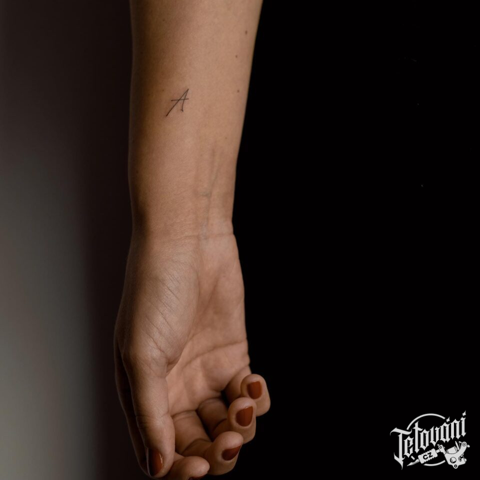 Tetování nápis, písmeno A na předloktí