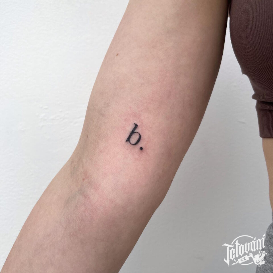 Tetování nápis, písmeno b. na paži