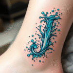 Tetování nápis písmeno J, živel voda na kotník