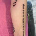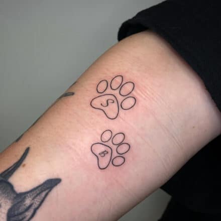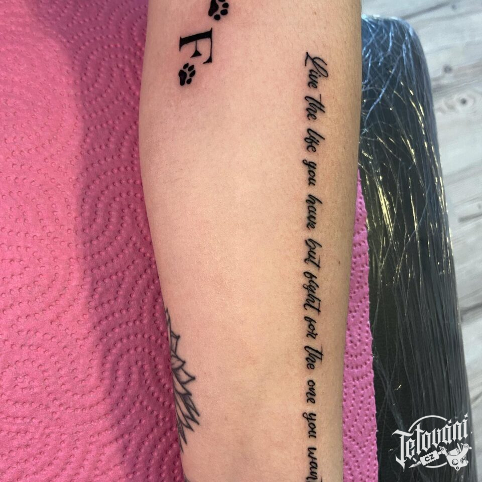 Tetování nápis, písmeno, psí tlapky na předloktí