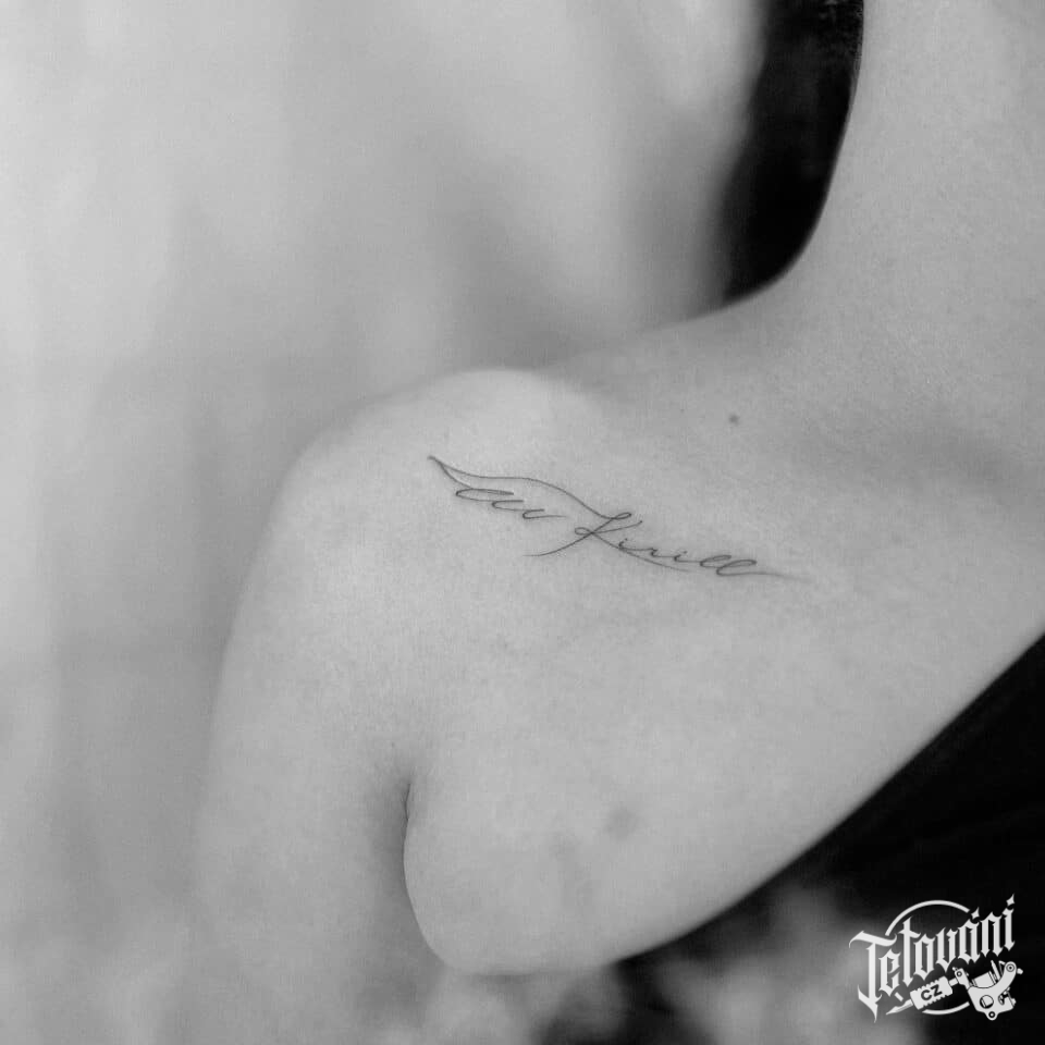 Tetování nápis pod klíční kostí