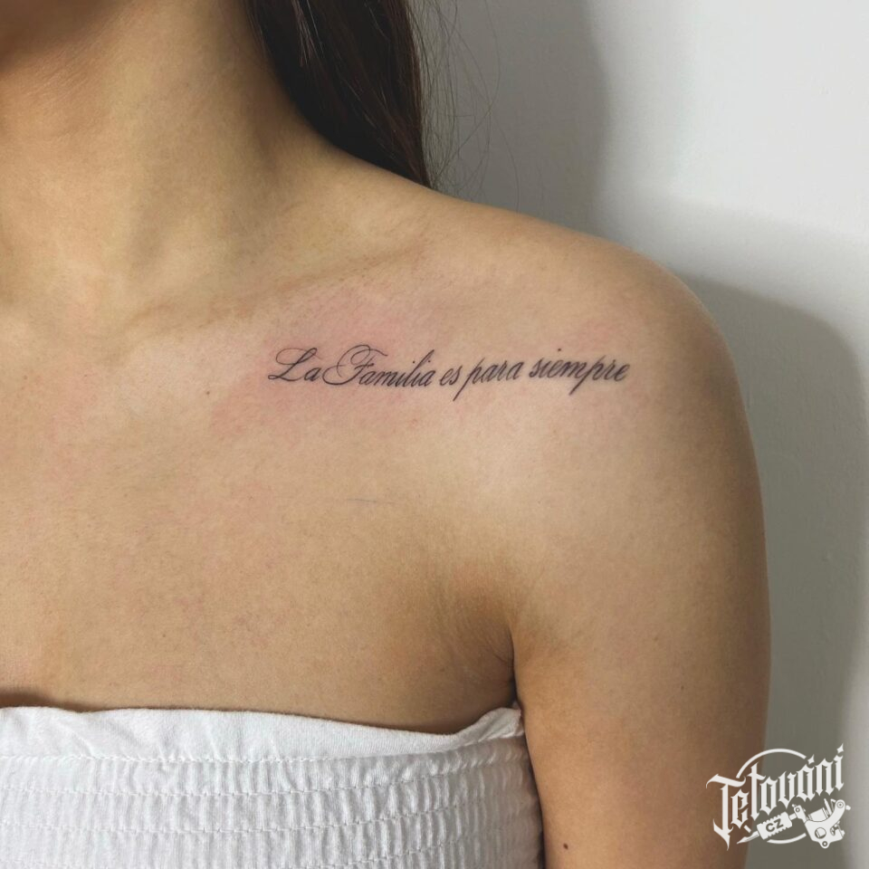 Tetování nápis pod klíční kostí