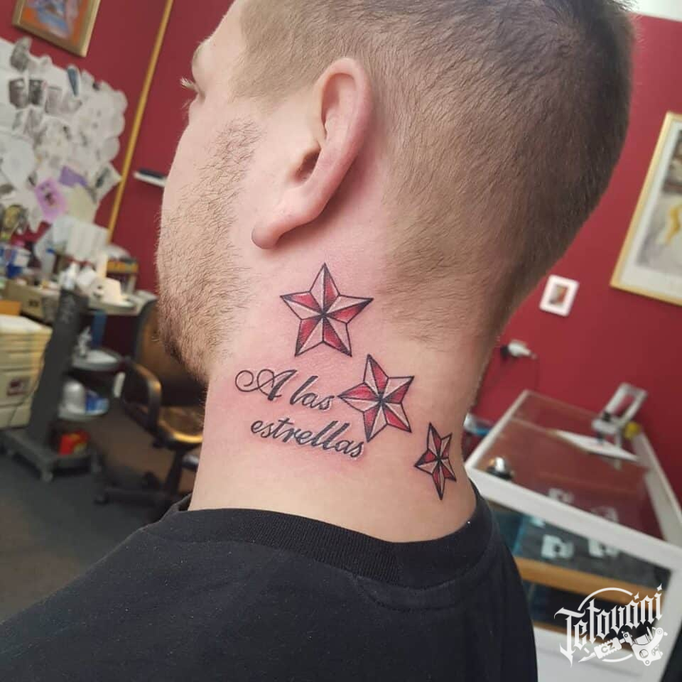 Tetování nápis s hvězdami na krk