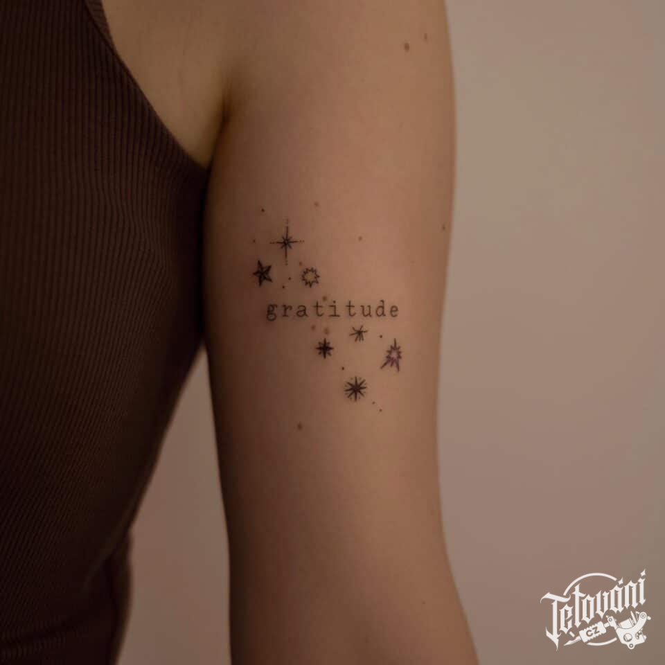 Tetování nápis s hvězdami na paži