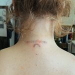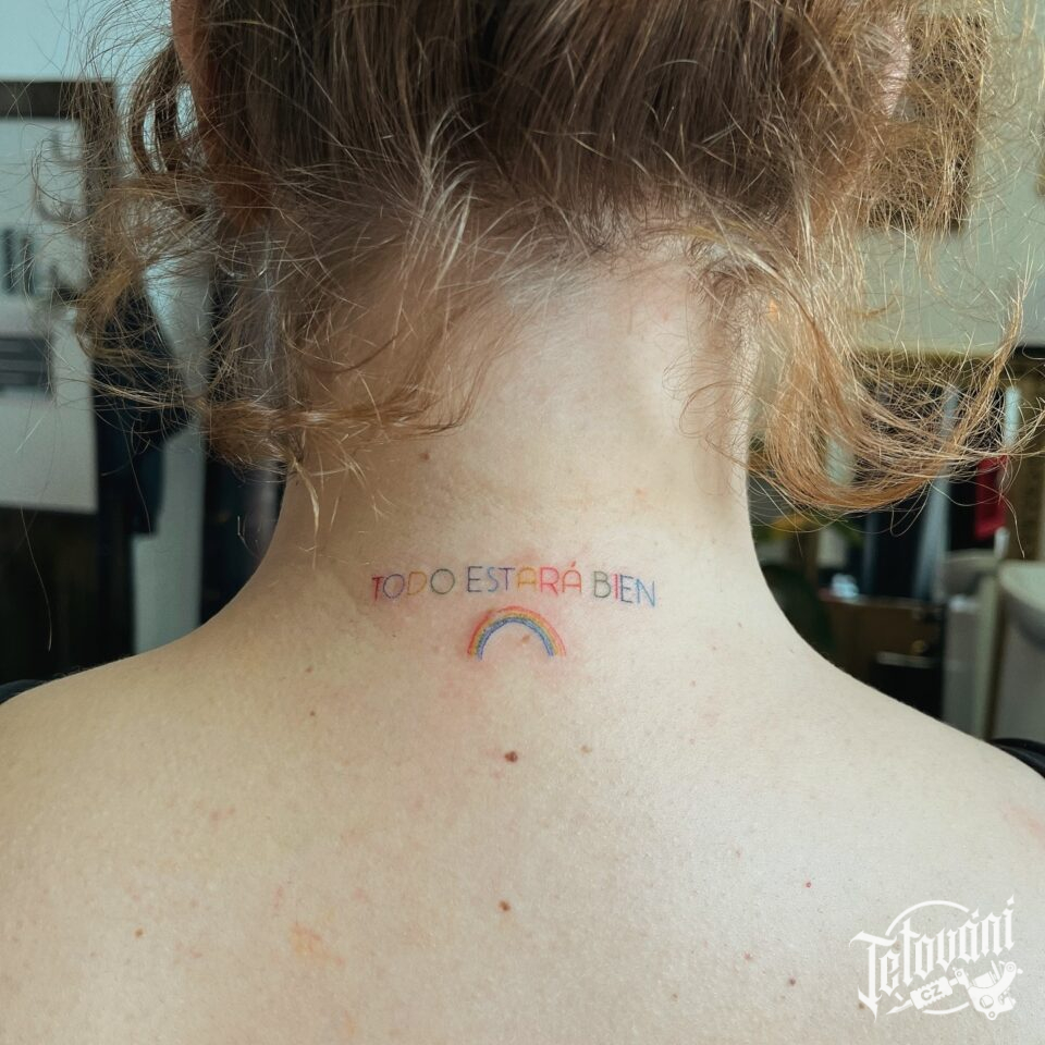 Tetování nápis, symbol duha na krk