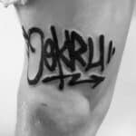 Tetování nápis, symbol na stehno