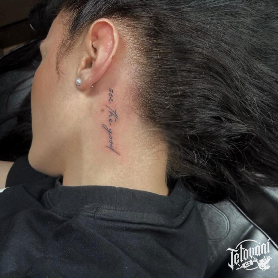 Tetování nápis za uchem