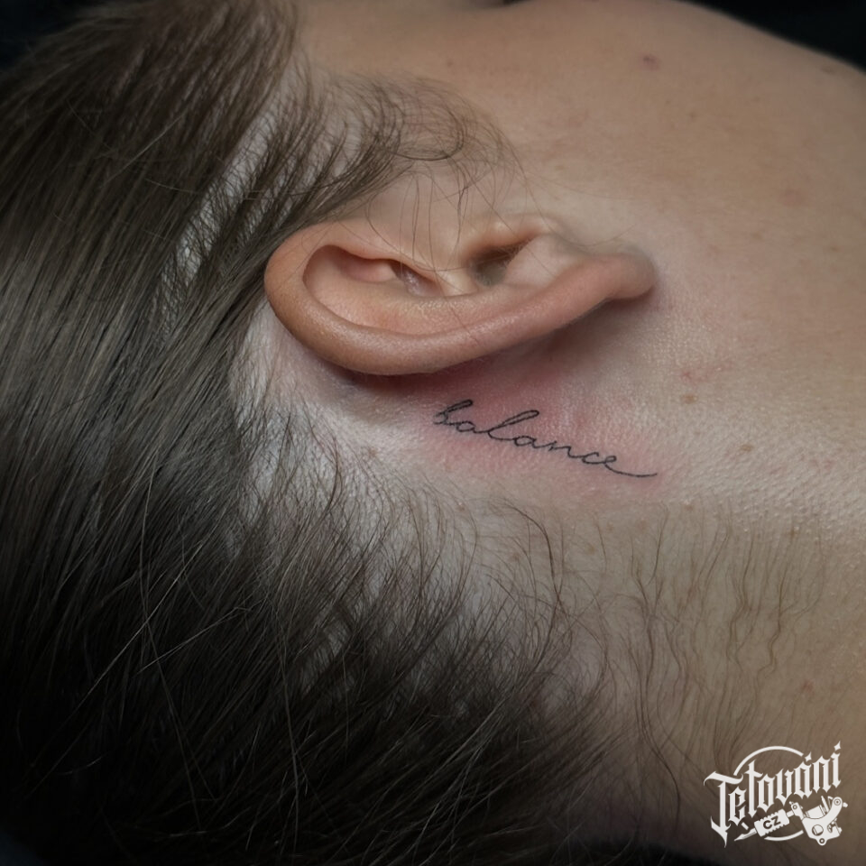 Tetování nápis za uchem