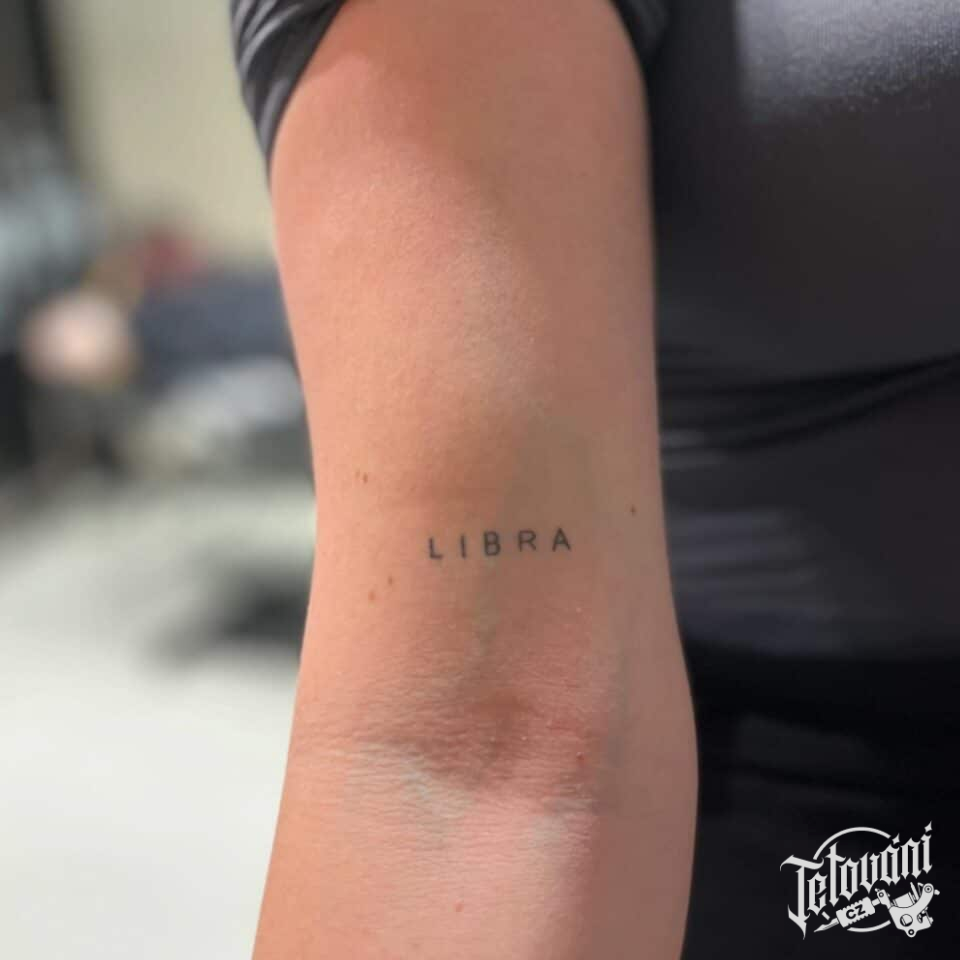 Tetování nápis znamení zvěrokruhu, Libra na paži