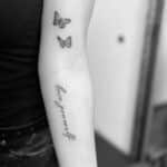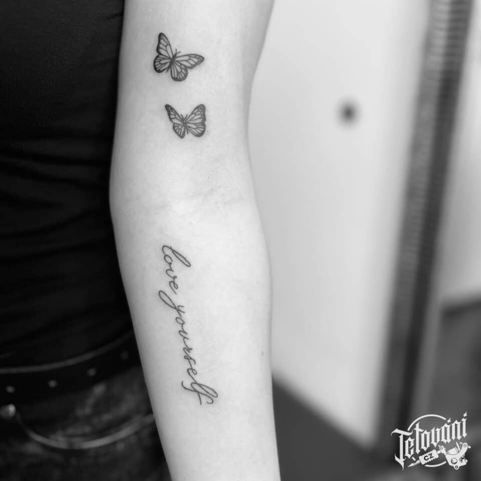 Tetování nápisy a zvířata, motýli na rukáv