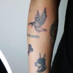 Tetování nápisy, anděl a zvířata, pes na předloktí