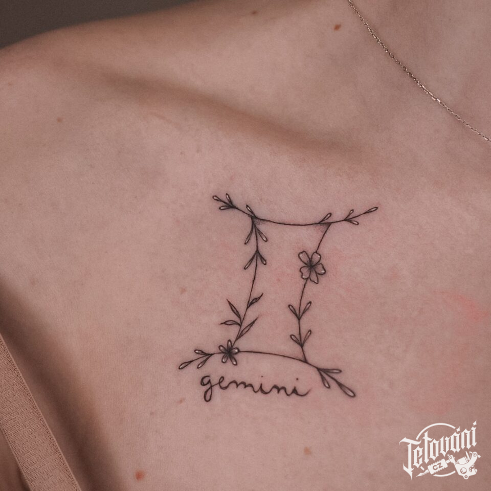 Tetování nápisy, Blíženci znamení zvěrokruhu pod klíční kostí