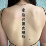 Tetování nápisy, čínské znaky na páteři