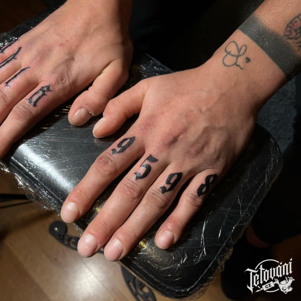 Tetování nápisy, čísla na prstech