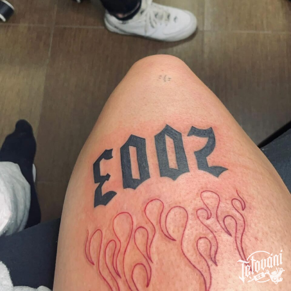 Tetování nápisy, čísla na stehno