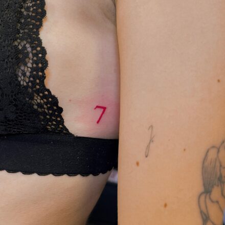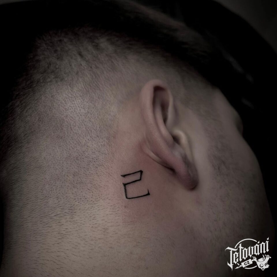 Tetování nápisy, číslo za uchem