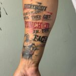 Tetování nápisy, citát a bojovník na předloktí