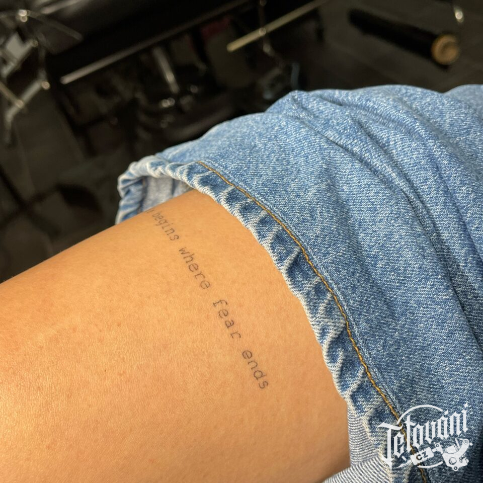 Tetování nápisy, citát na holeň