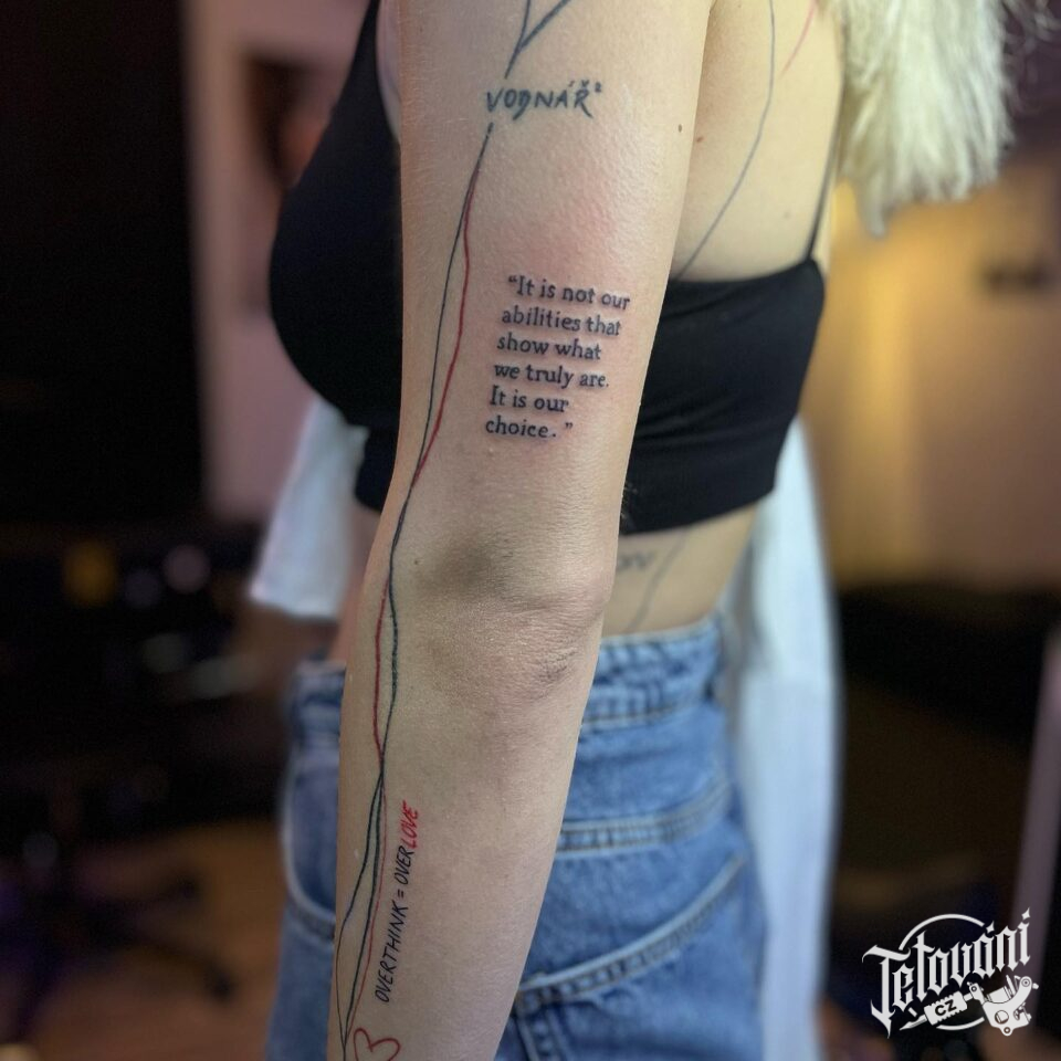Tetování nápisy, citát na paži