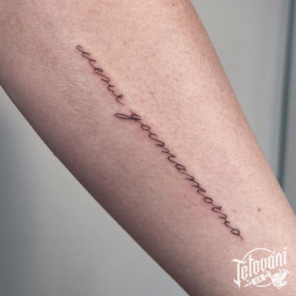 Tetování nápisy citát na předloktí
