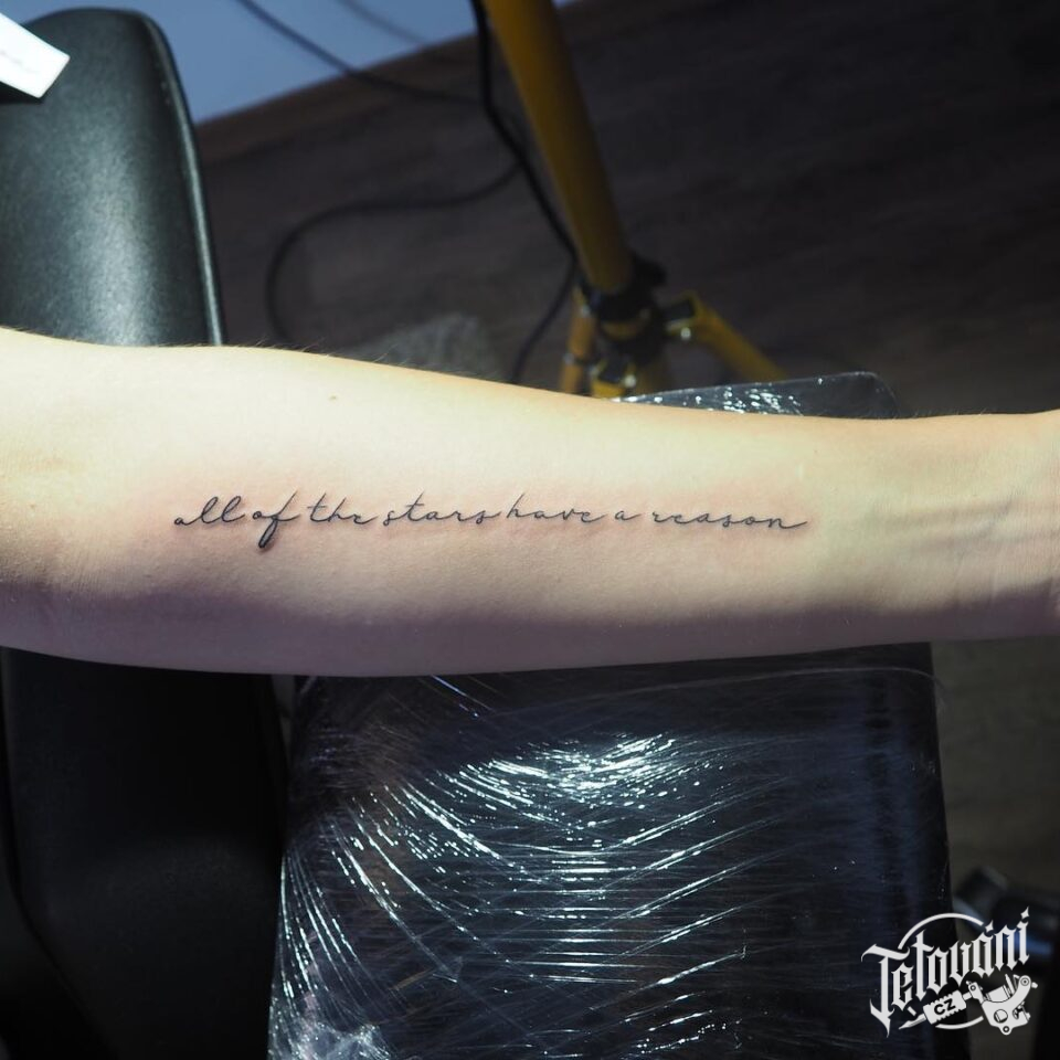 Tetování nápisy, citát na předloktí