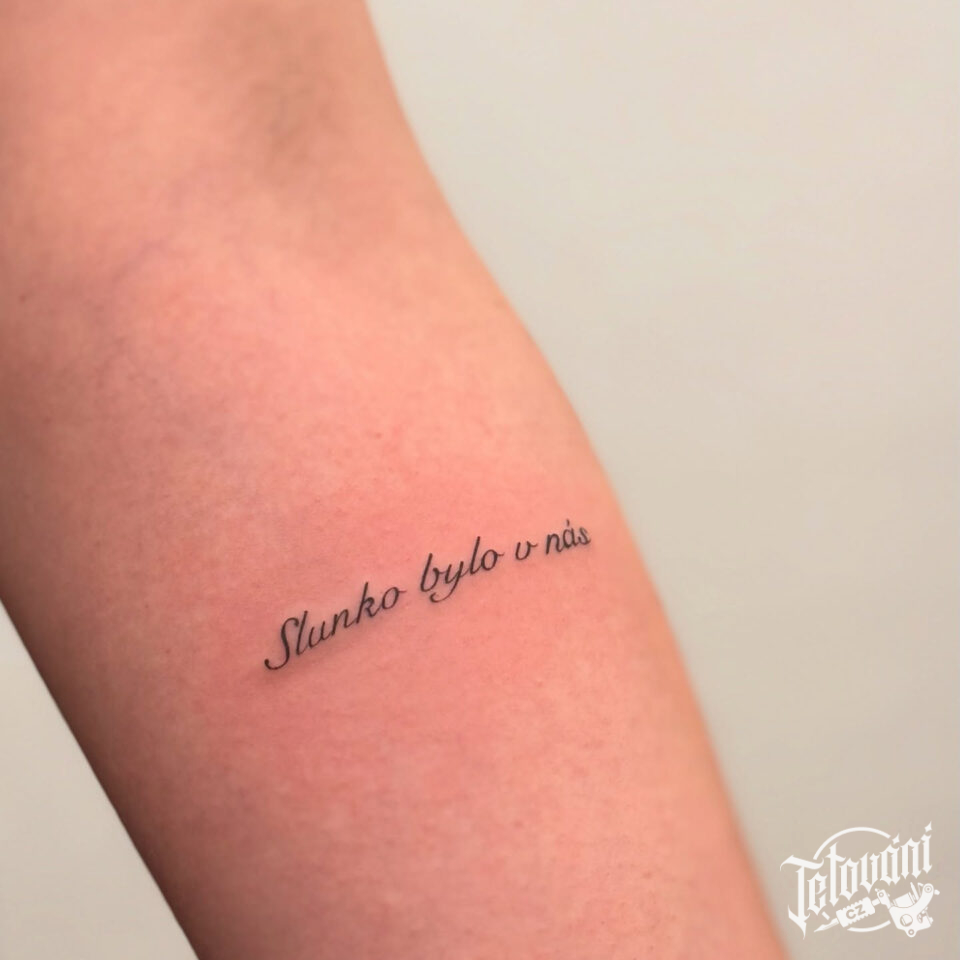 Tetování nápisy, citát na předloktí