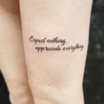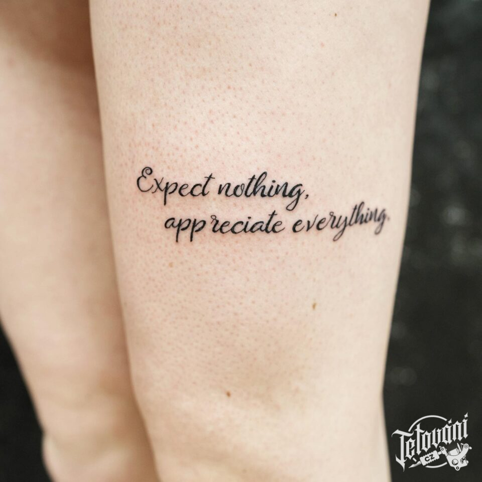 Tetování nápisy, citát na stehnu