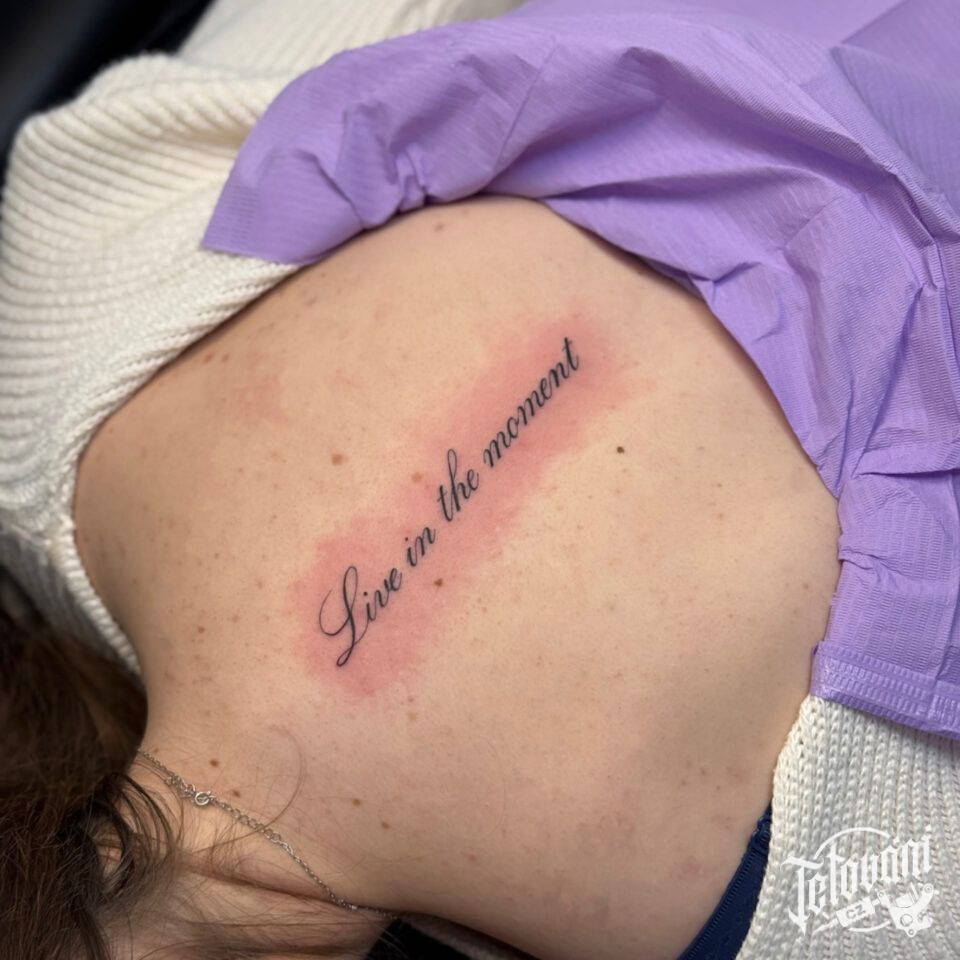 Tetování nápisy, citát na záda