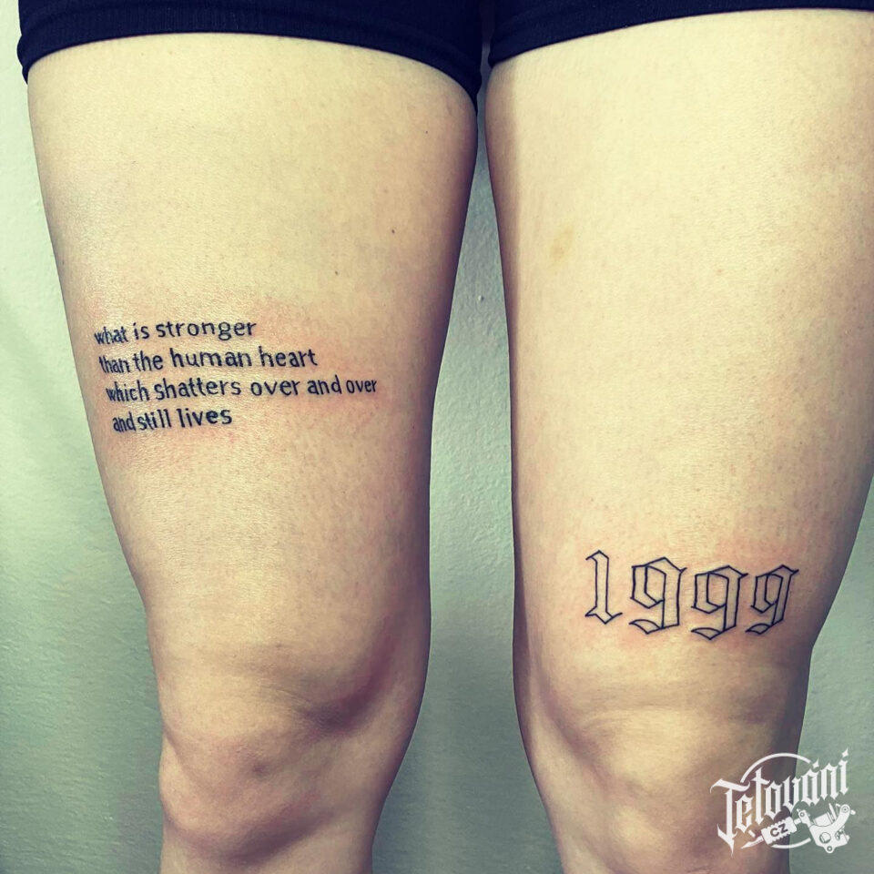 Tetování nápisy, citáty a čísla na stehno