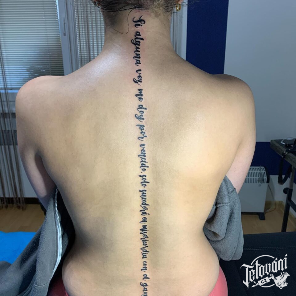 Tetování nápisy, citáty na páteř