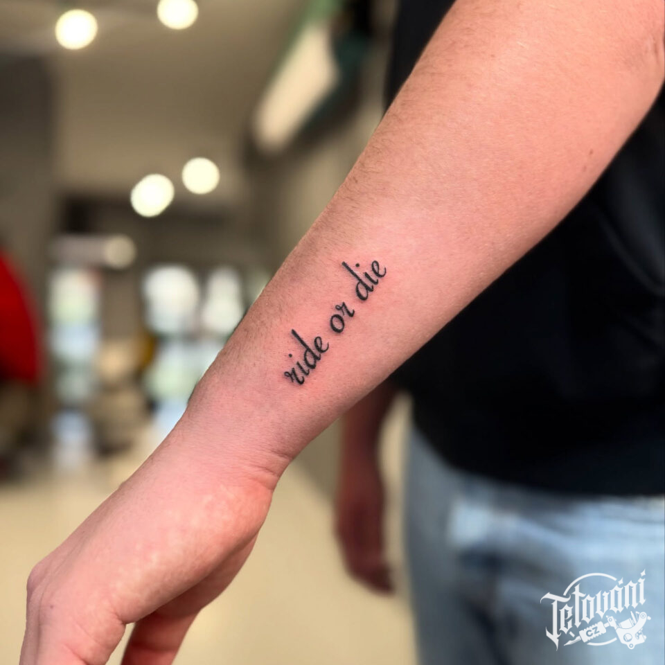 Tetování nápisy, citát na předloktí