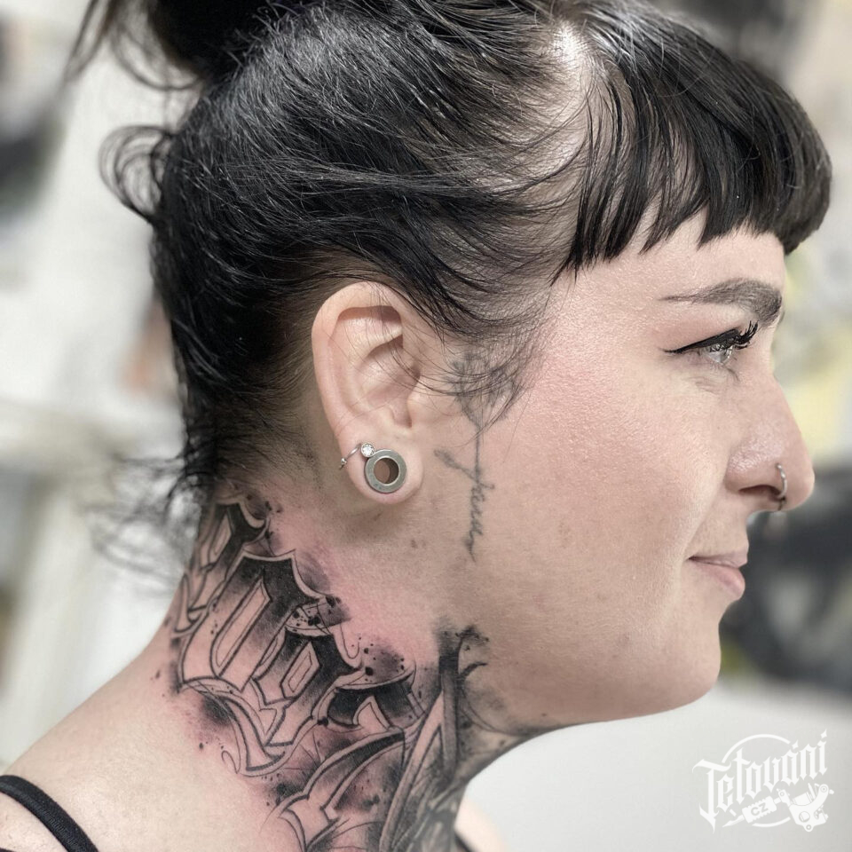 Tetování nápisy, datum, čísla na krku