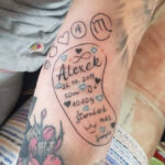 Tetování nápisy, jména, datumy, čísla a znamení zvěrokruhu na předloktí
