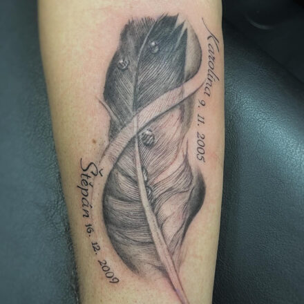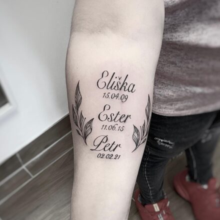 Tetování nápisy, jméno, datum na předloktí