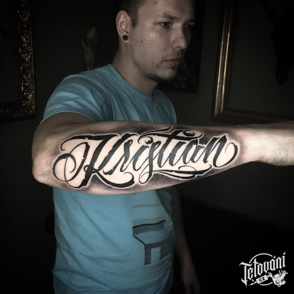 Tetování nápisy, jméno na předloktí