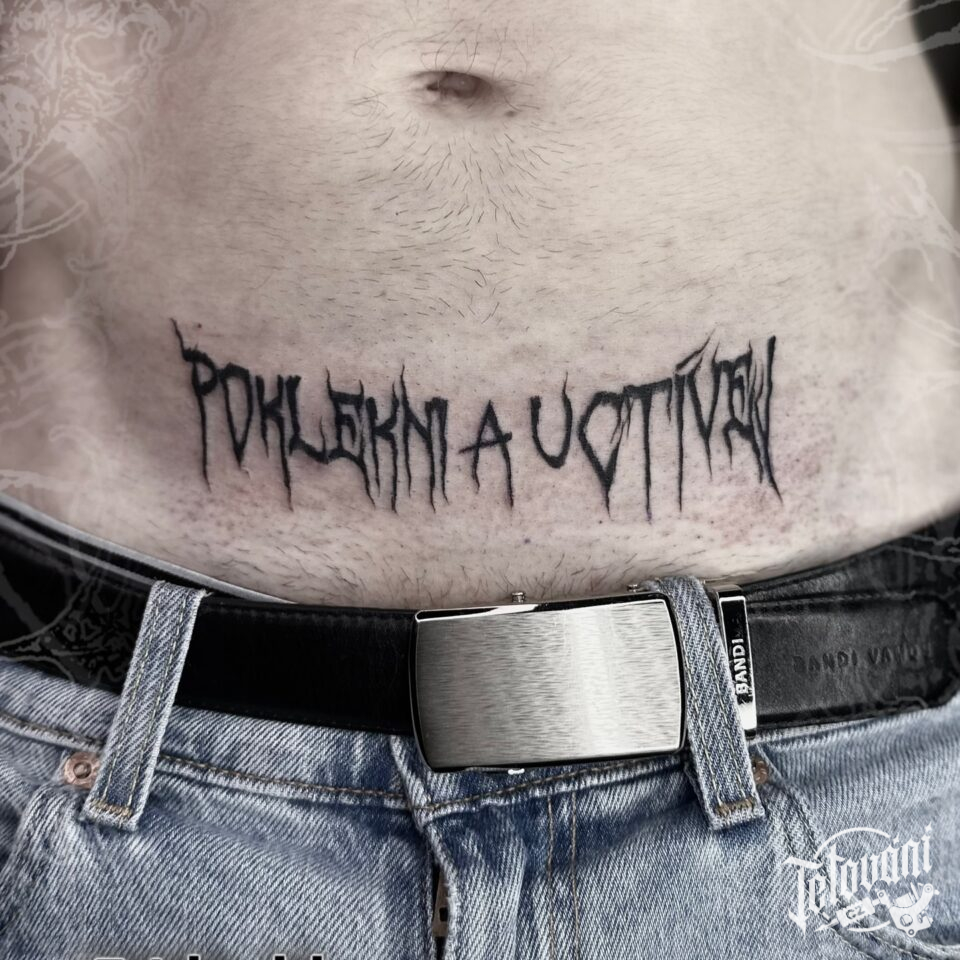 Tetování nápisy na břichu