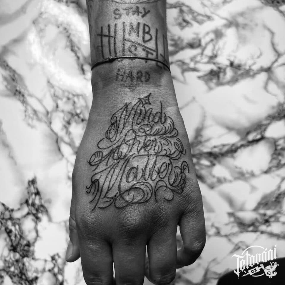 Tetování nápisy na hřbetu ruky