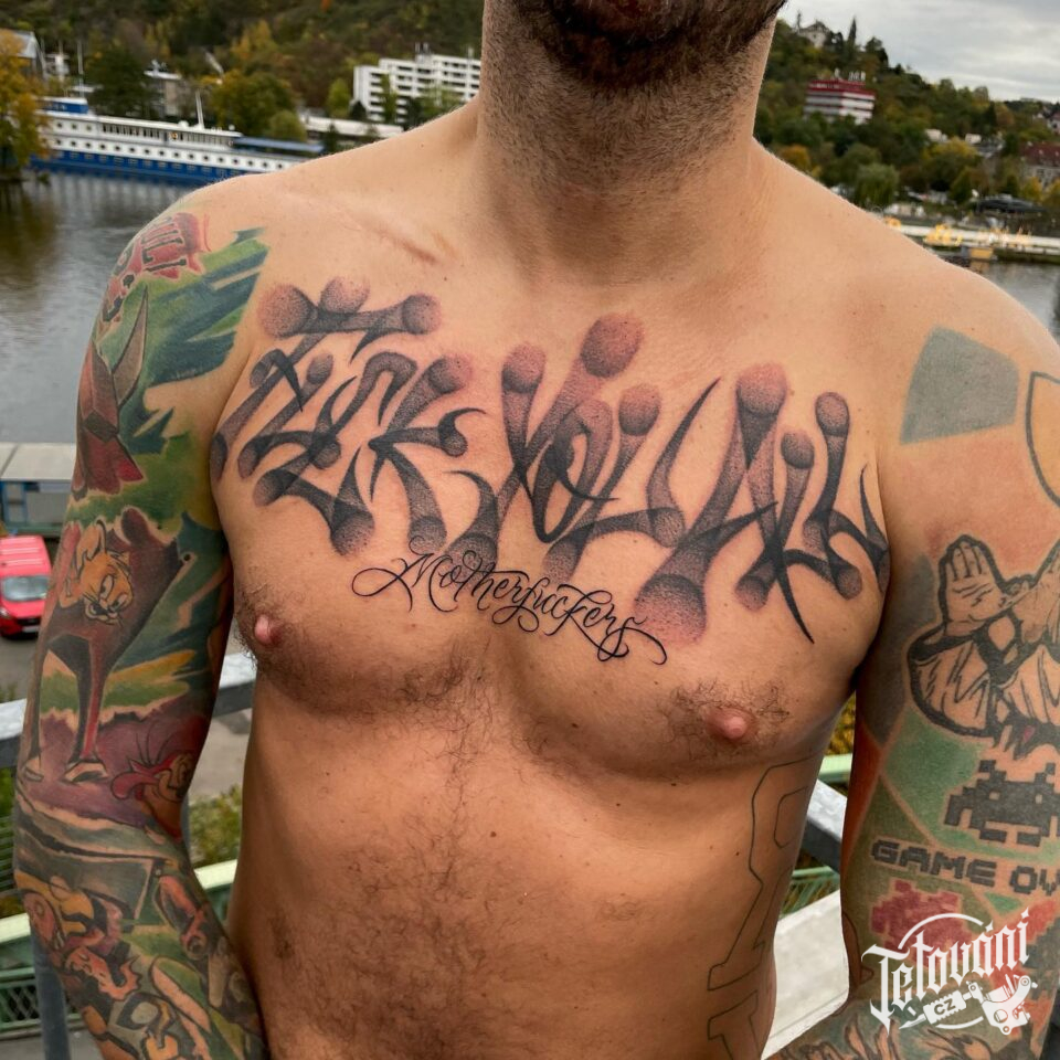 Tetování nápisy na hrudi