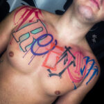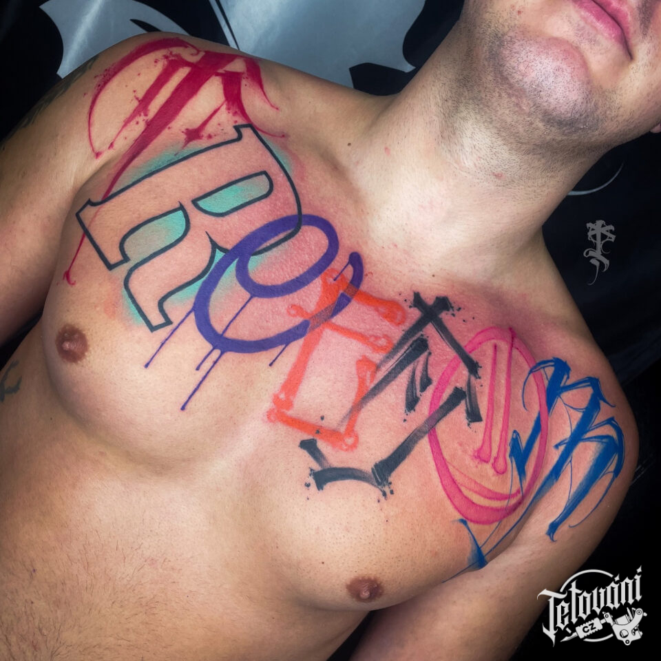Tetování nápisy na hrudi