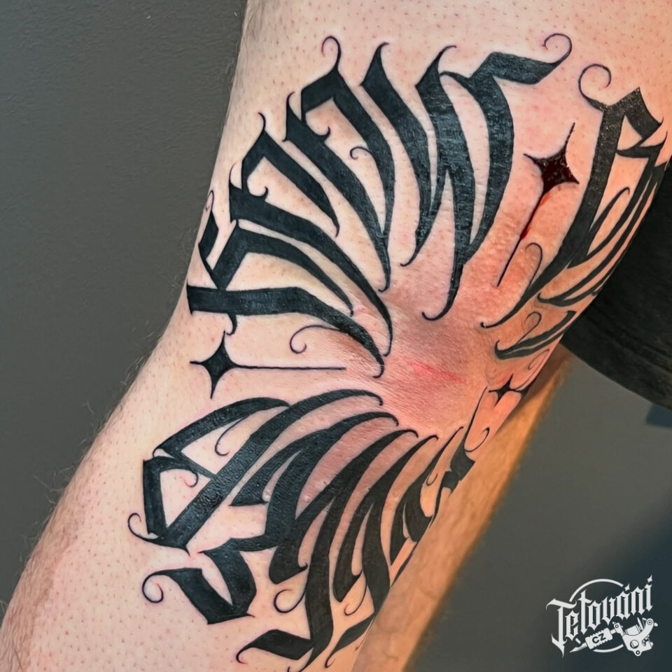 Tetování nápisy na koleno