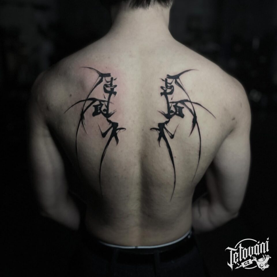 Tetování nápisy na lopatkách