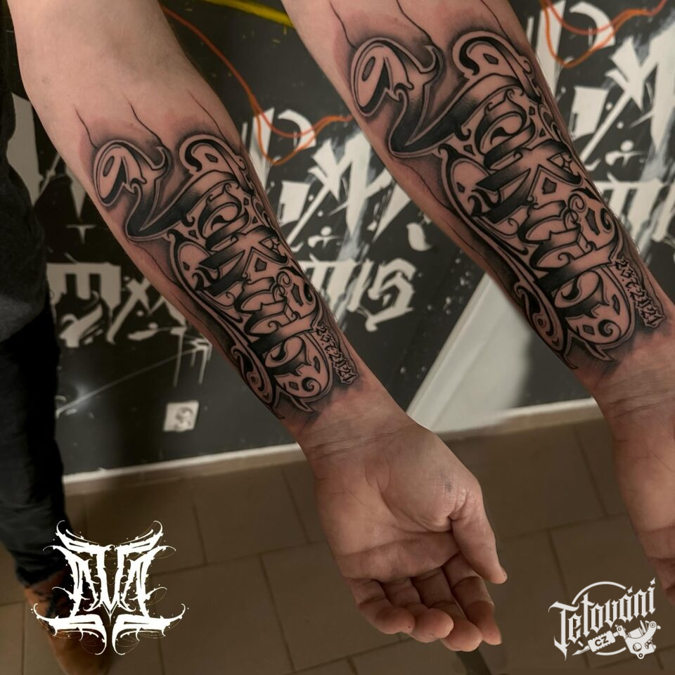 Tetování nápisy na předloktí
