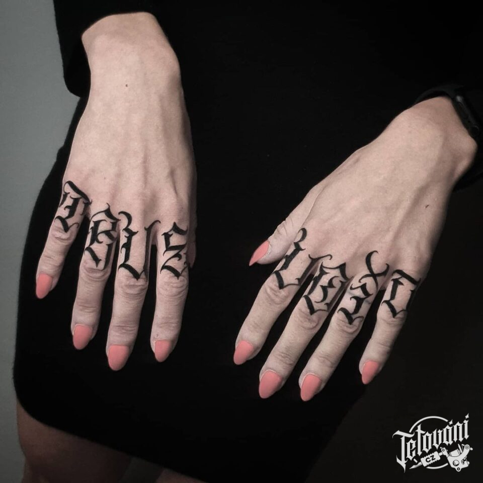 Tetování nápisy na prsty