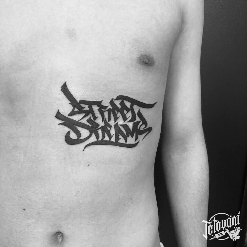 Tetování nápisy na žebrech