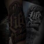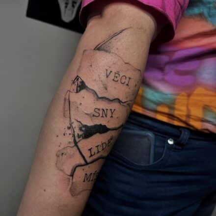 Tetování nápisy, písmena, citáty, znaky a symboly na předloktí