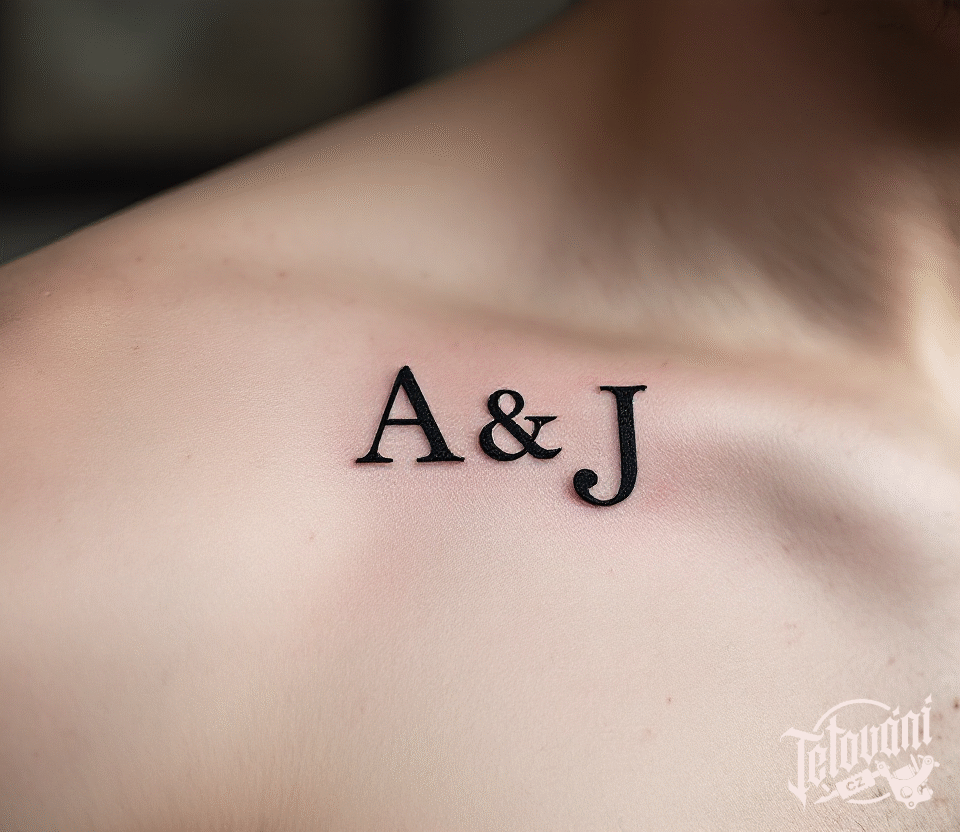 Tetování nápisy, písmena, monogramy na klíční kosti