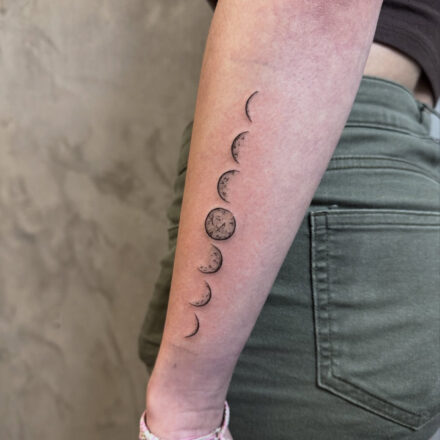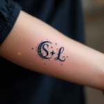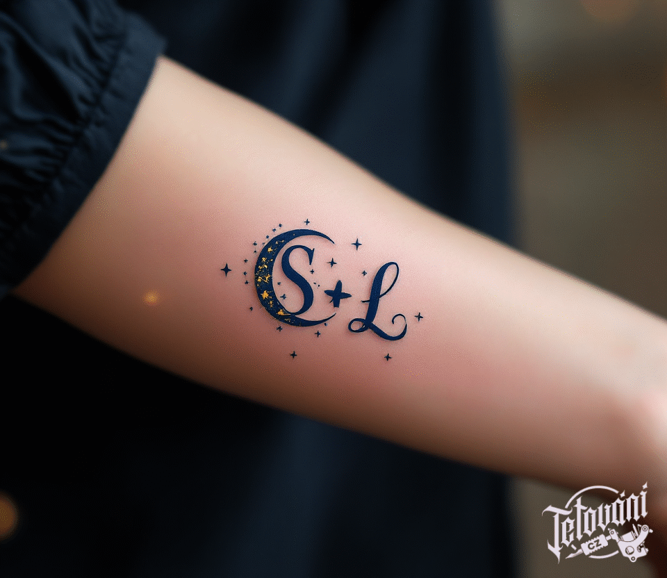 Tetování nápisy, písmena, monogramy s měsícem na předloktí