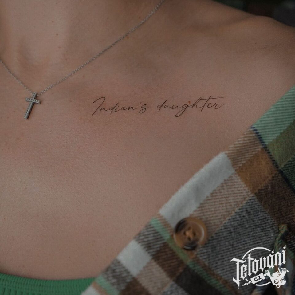 Tetování nápisy písmena pod klíční kosti